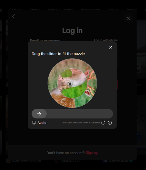 When you try to log in to TikTok, if your IP appears suspicious, you are using a VPN, or your browser profile seems unusual, you are often instantly presented with a CAPTCHA. One common type is the “whirl” or “rotate” CAPTCHA.